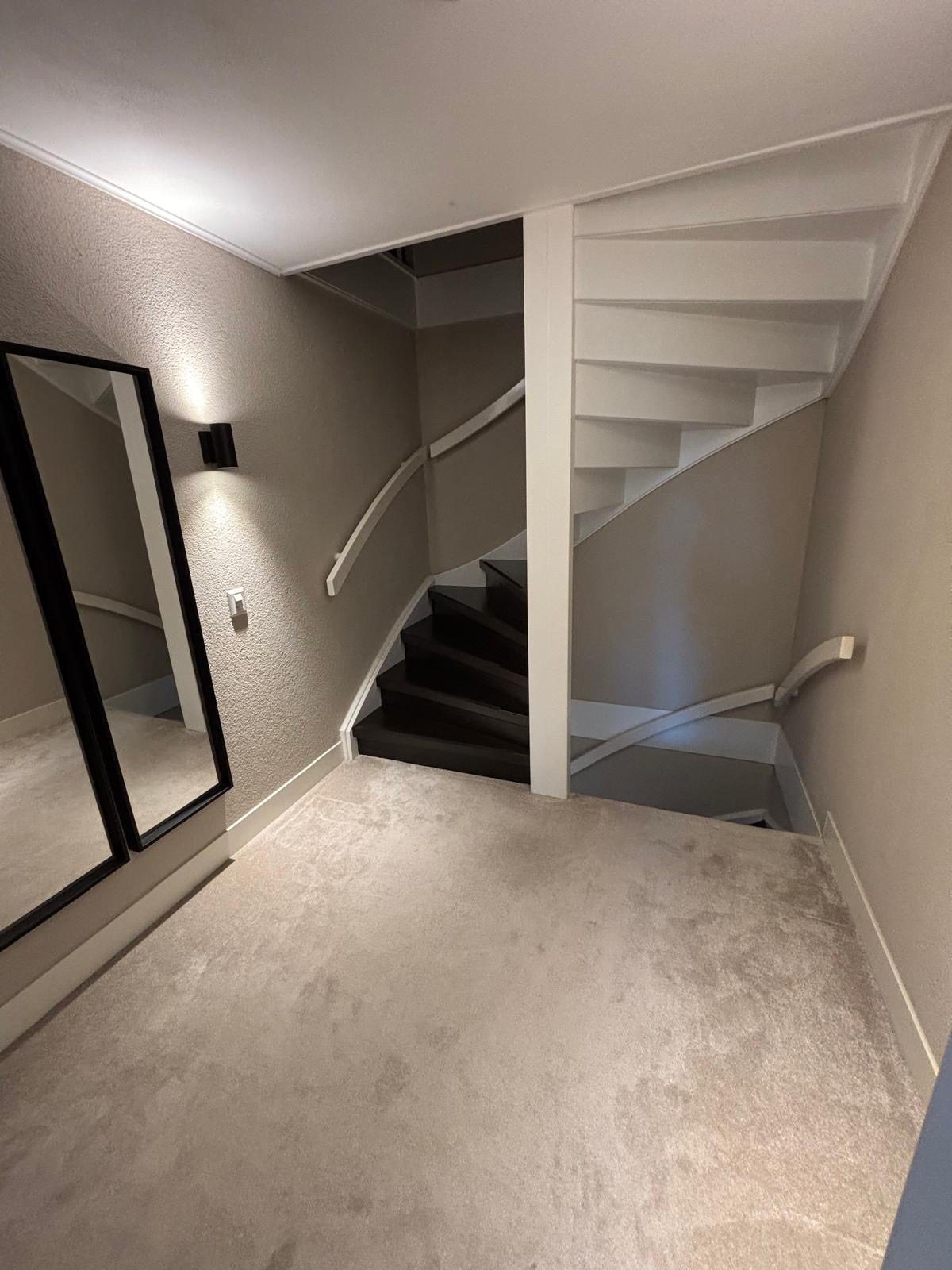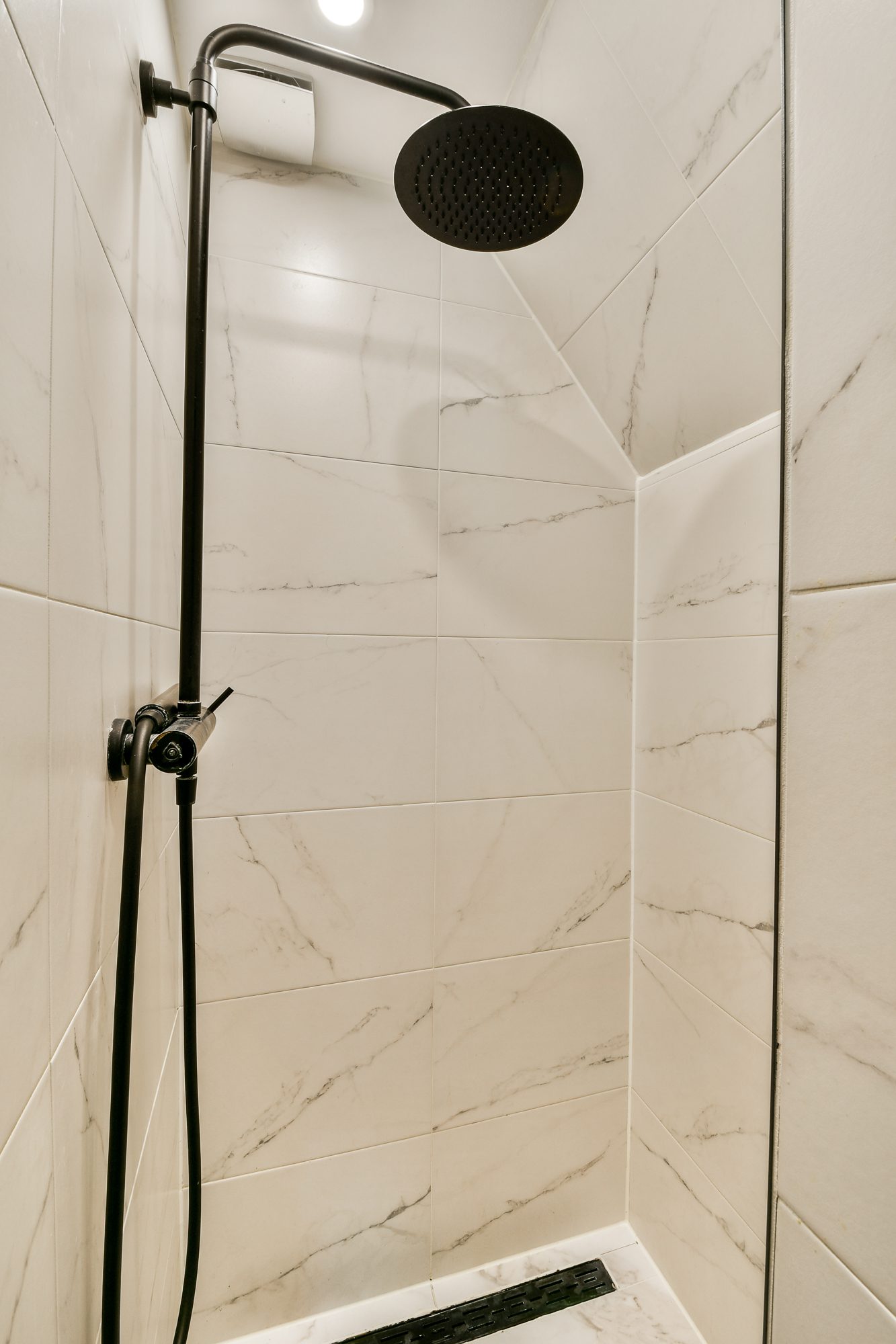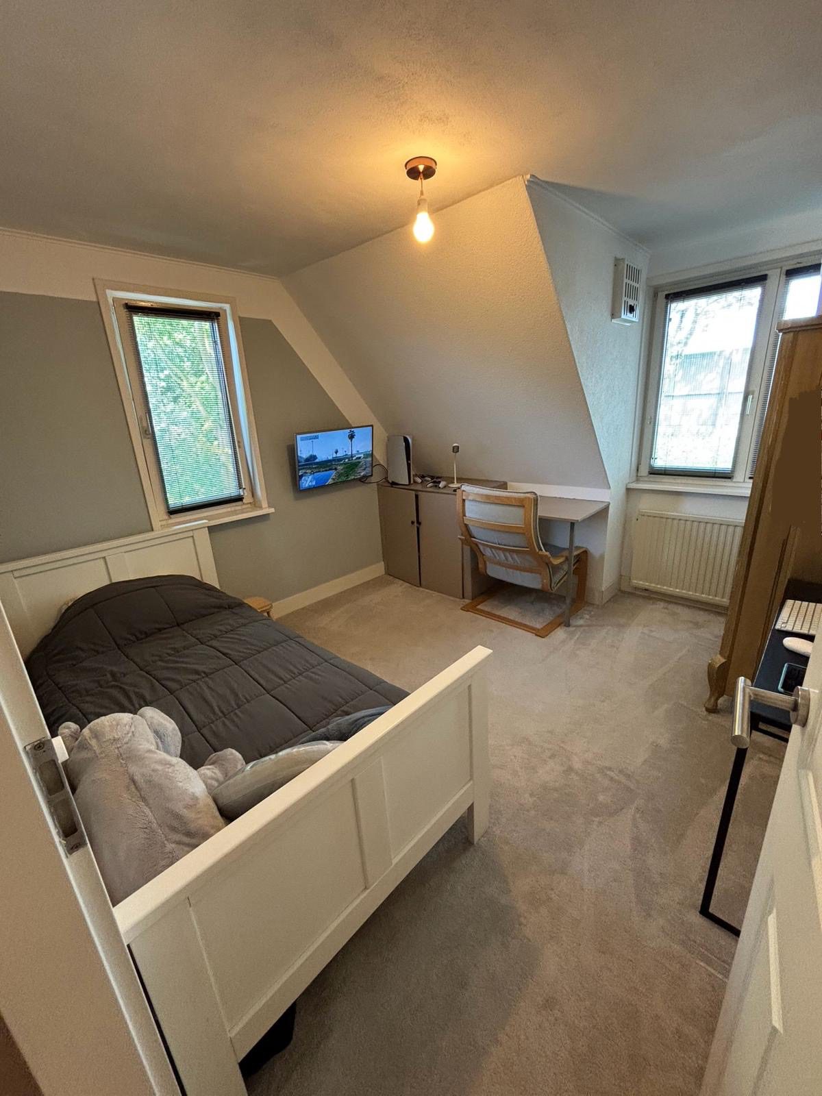 De vierde slaapkamer is uitgerust met een grote kastenwand en wastafel. In deze slaapkamer is recent een nieuwe, volledig betegelde douche geplaatst met bijbehorende wastafel. Daarnaast zijn hier de aansluitingen voor wasmachine en droger aanwezig, evenals de cv-installatie die vernieuwd is in 2023 (netjes weggewerkt).